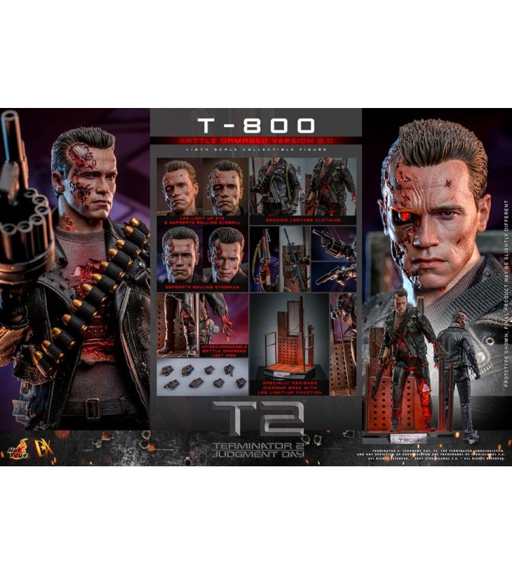 Figurine articulée taille env. 32 cm avec socle, vêtements tissu et nombreux accessoires. La tête ´Battle Damaged´ possède un oeil à éclairage par LED. Modèle avec accessoires, livré en emballage boîte-fenêtre de collection, fabriqué par Hot Toys et distribué en édition limitée par Sideshow Collectibles.